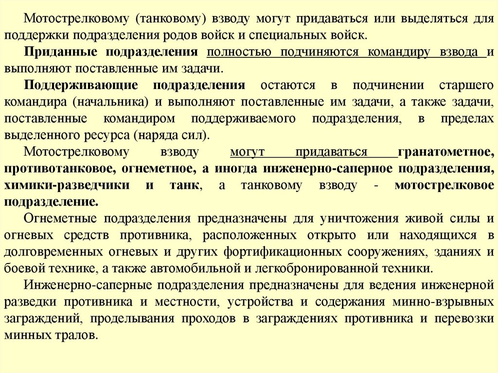 (пулеметным) взводом (отделением) и танковым взводом (танком), а также рекомендации по