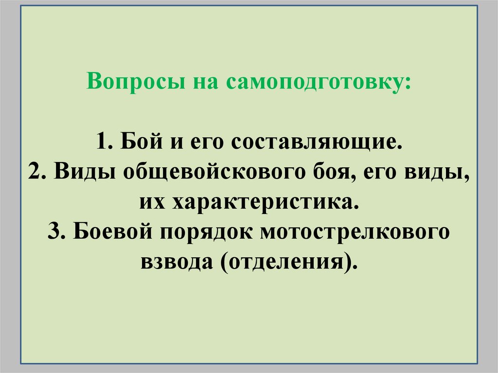 Вопросы на самоподготовку:1. Бой и его составляющие.