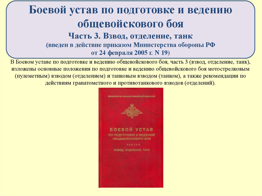 В Боевом уставе по подготовке и ведению общевойскового боя, часть 3 (взвод, отделение, танк),