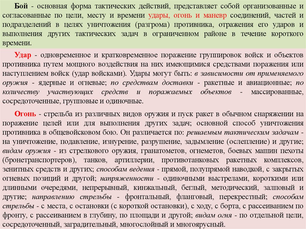 Бой - основная форма тактических действий, представляет собой организованные исогласованные по цели, месту и времени удары, огонь и маневр соединений, частей и