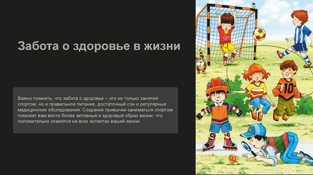 Забота о здоровье в жизниВажно помнить, что забота о здоровье – это не только занятия