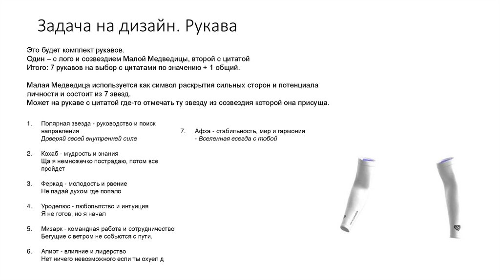 Итого: 7 рукавов на выбор с цитатами по значению + 1 общий.