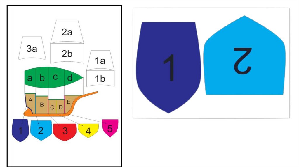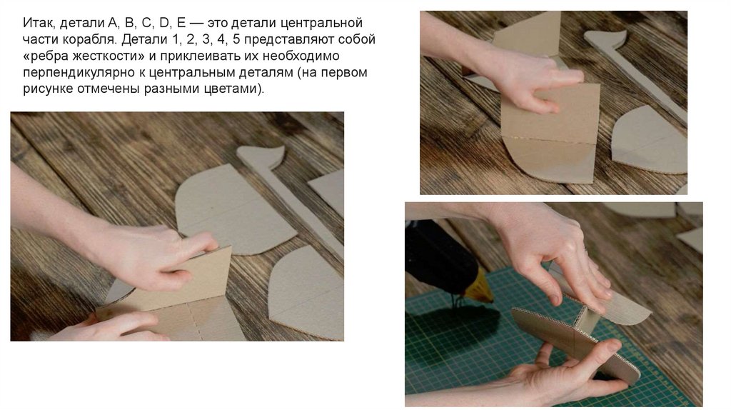 Итак, детали A, B, C, D, Е — это детали центральнойчасти корабля. Детали 1, 2, 3, 4, 5 представляют собой