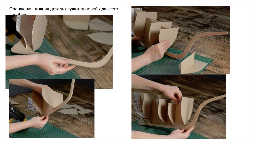 Оранжевая нижняя деталь служит основой для всегокорабля.
