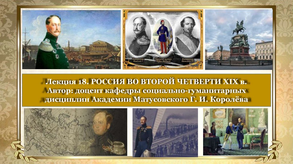 Лекция 18. РОССИЯ ВО ВТОРОЙ ЧЕТВЕРТИ ХIХ в.Автор: доцент кафедры социально-гуманитарных