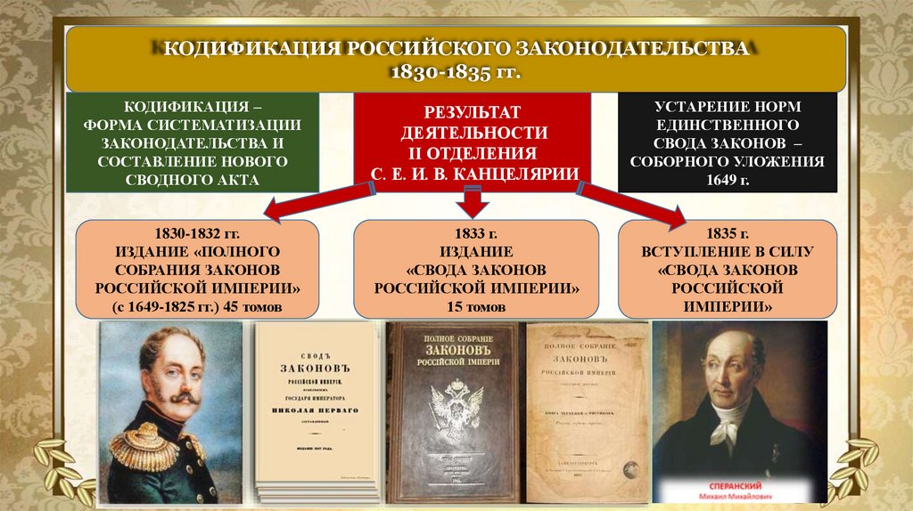 1.2. Кодификация законодательства. Второе отделение С.Е.И.В. Канцелярии и М. М. Сперанский.
