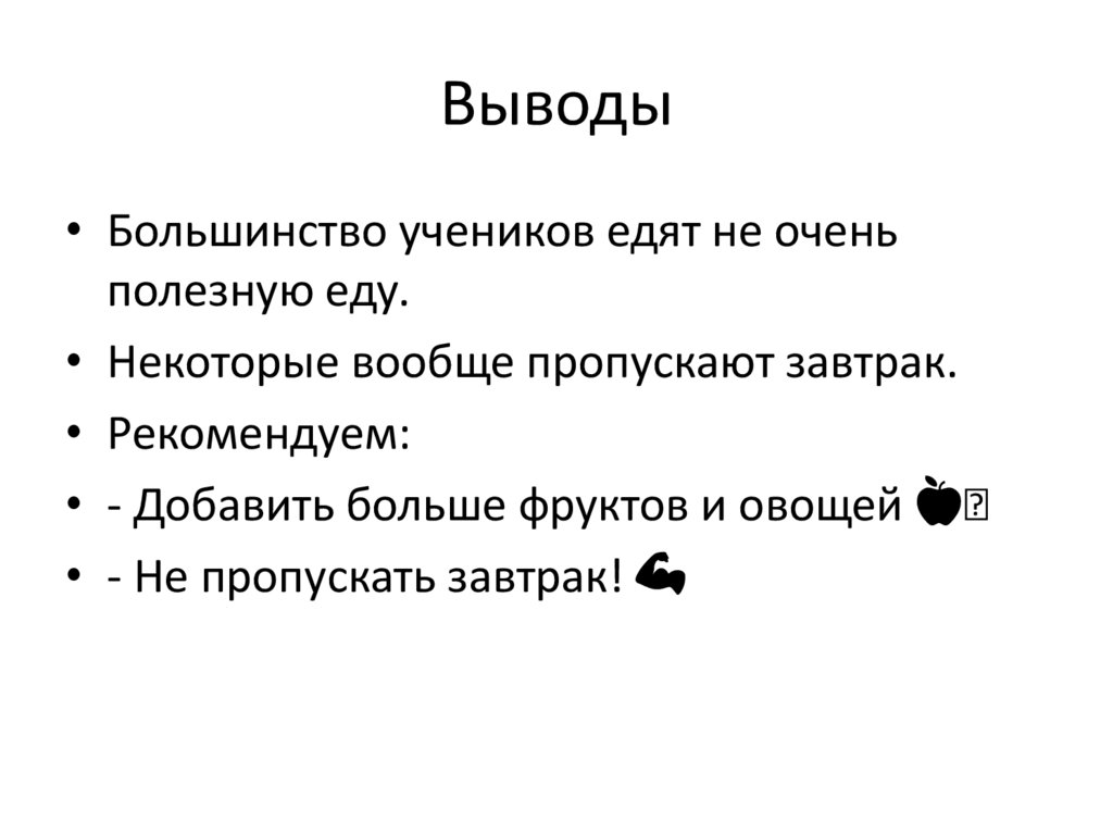 Проект: Завтраки 6 «Д» классаИсследование привычек питания