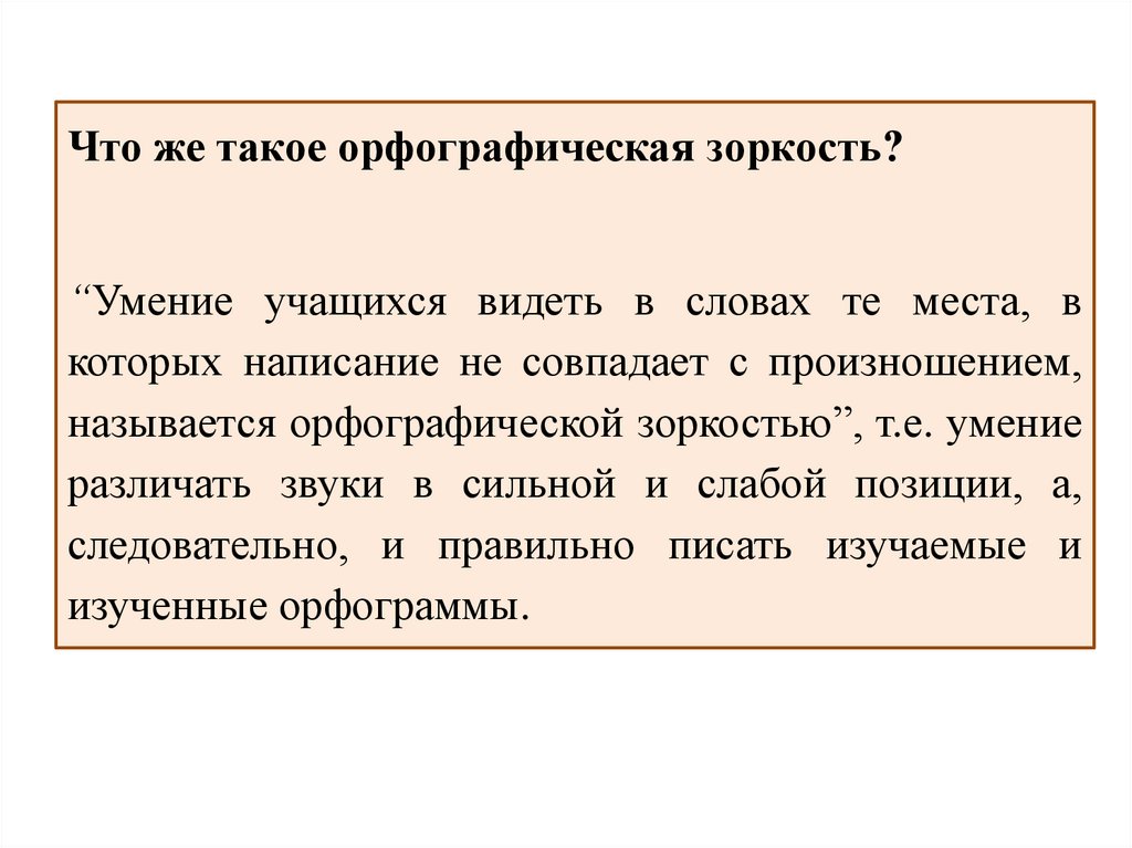 Что же такое орфографическая зоркость?“Умение учащихся видеть в словах те места, в