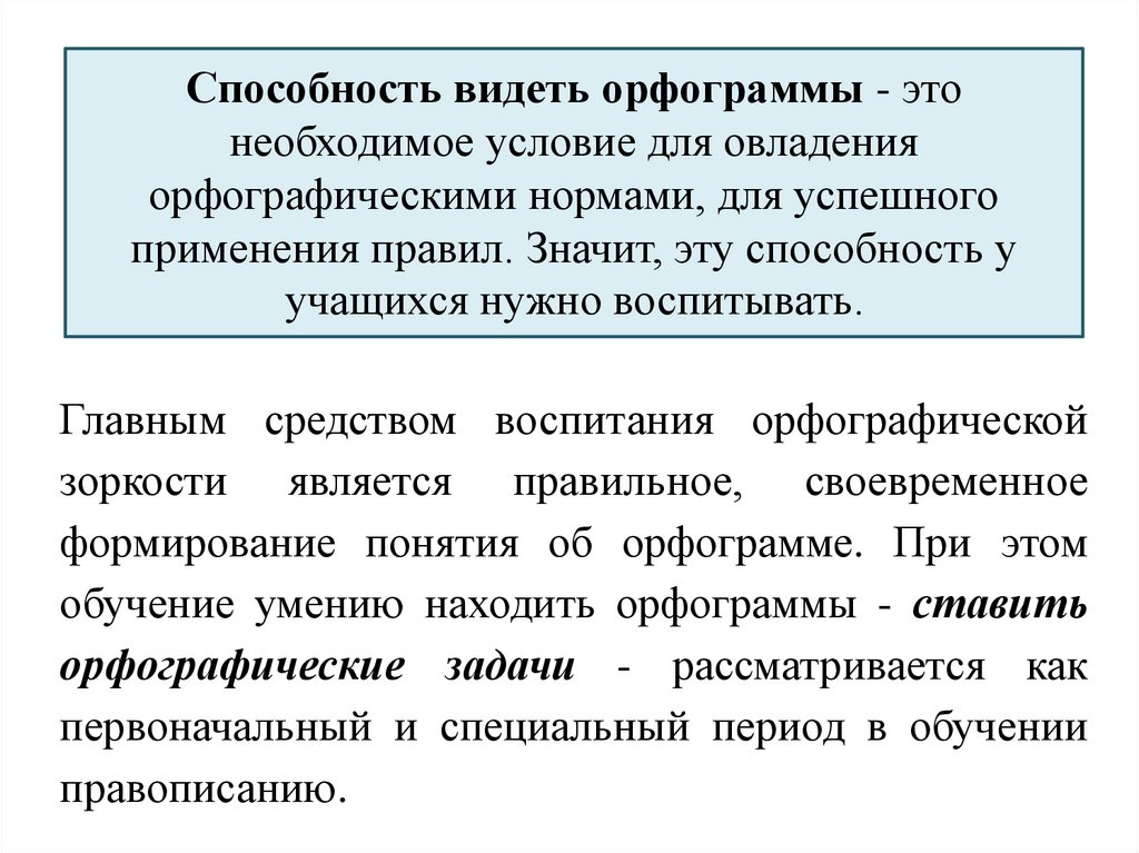 Способность видеть орфограммы - этонеобходимое условие для овладения