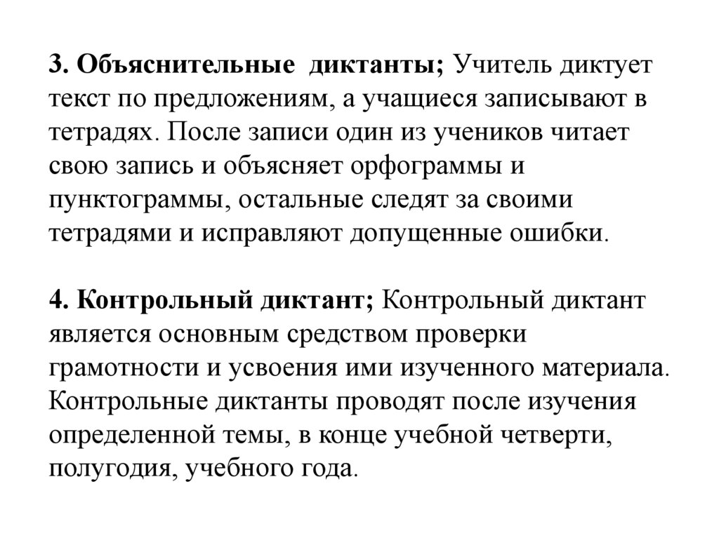3. Объяснительные диктанты; Учитель диктуеттекст по предложениям, а учащиеся записывают в