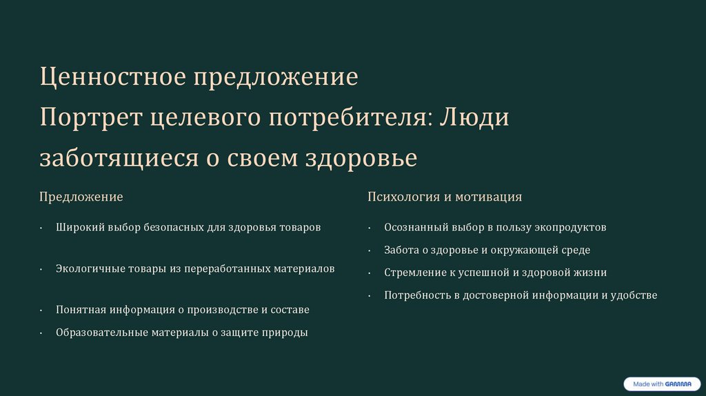 Ценностное предложениеПортрет целевого потребителя: Люди