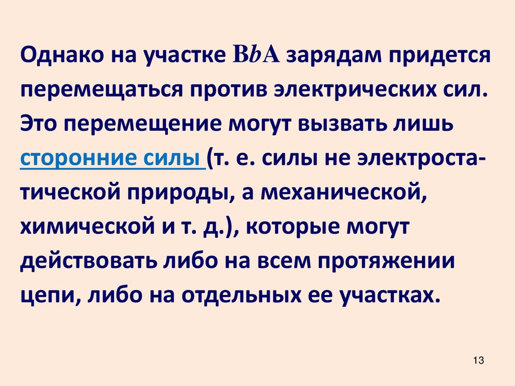Однако на участке BbA зарядам придетсяперемещаться против электрических сил.