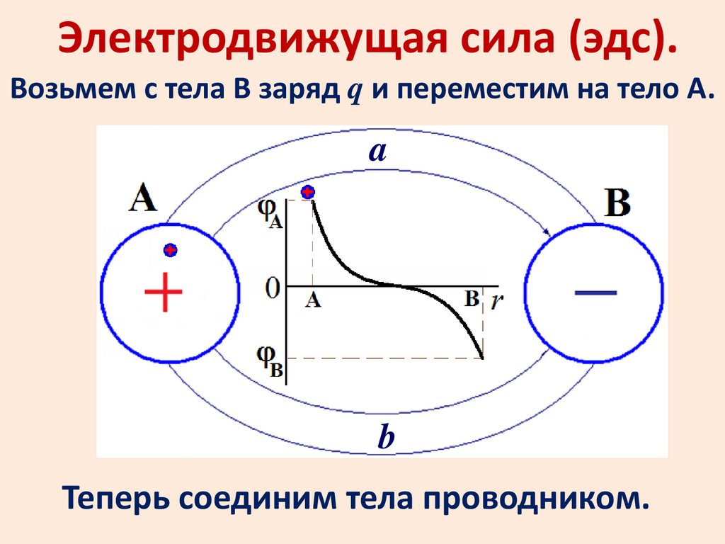 Электродвижущая сила (эдс).Возьмем с тела В заряд q и переместим на тело А.