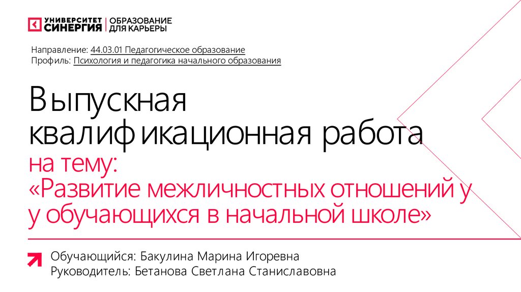 Направление: 44.03.01 Педагогическое образованиеПрофиль: Психология и педагогика начального образования