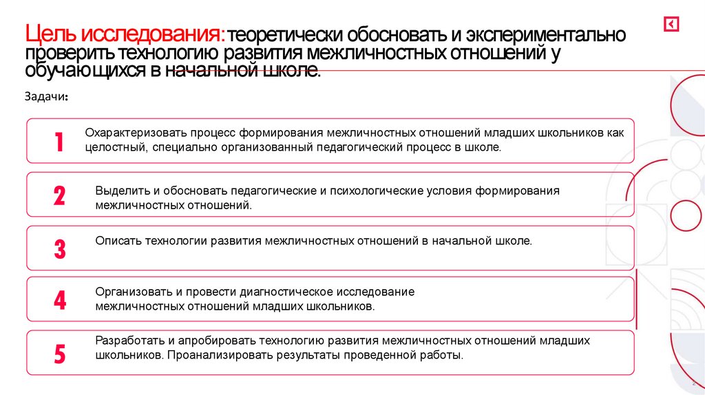 Цель исследования: теоретически обосновать и экспериментальнопроверить технологию развития межличностных отношений у