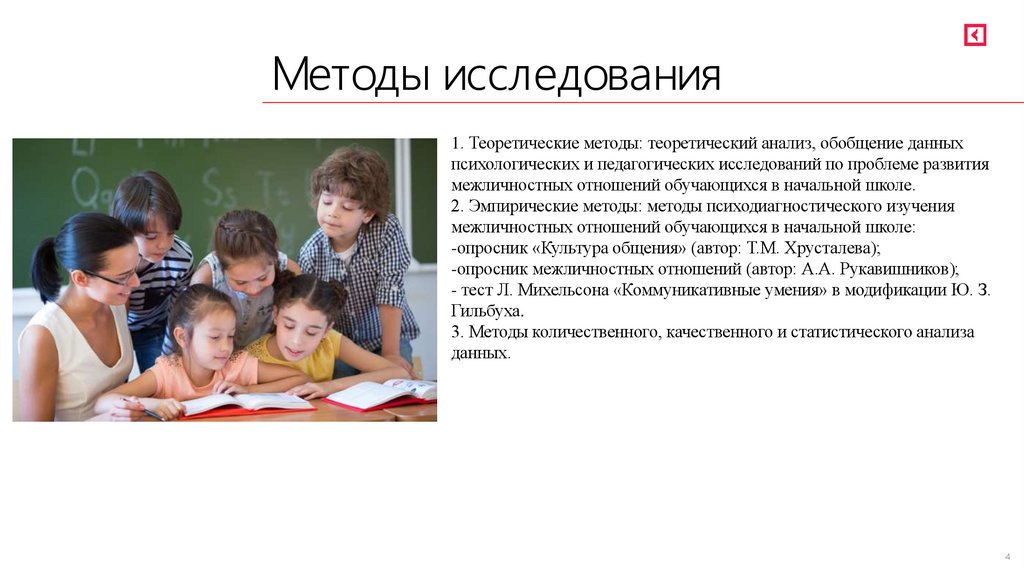 Теоретико-методологические основы исследования составили труды В.А.Блинова, Ю.М. Едихановой, Я.Л. Коломинского, М.Ю. Кондратьева, В.Н.