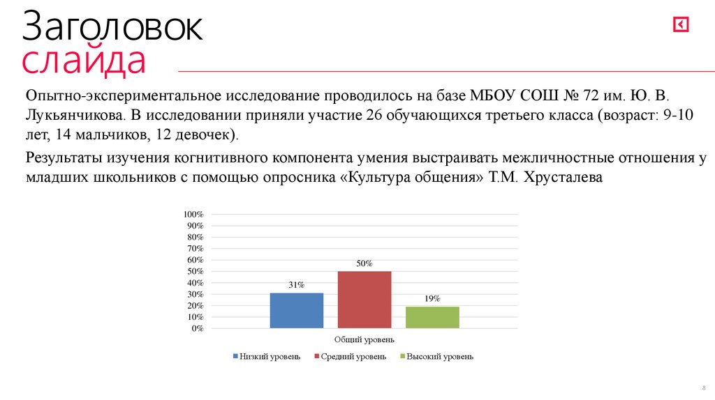 Опытно-экспериментальное исследование проводилось на базе МБОУ СОШ № 72 им. Ю. В.