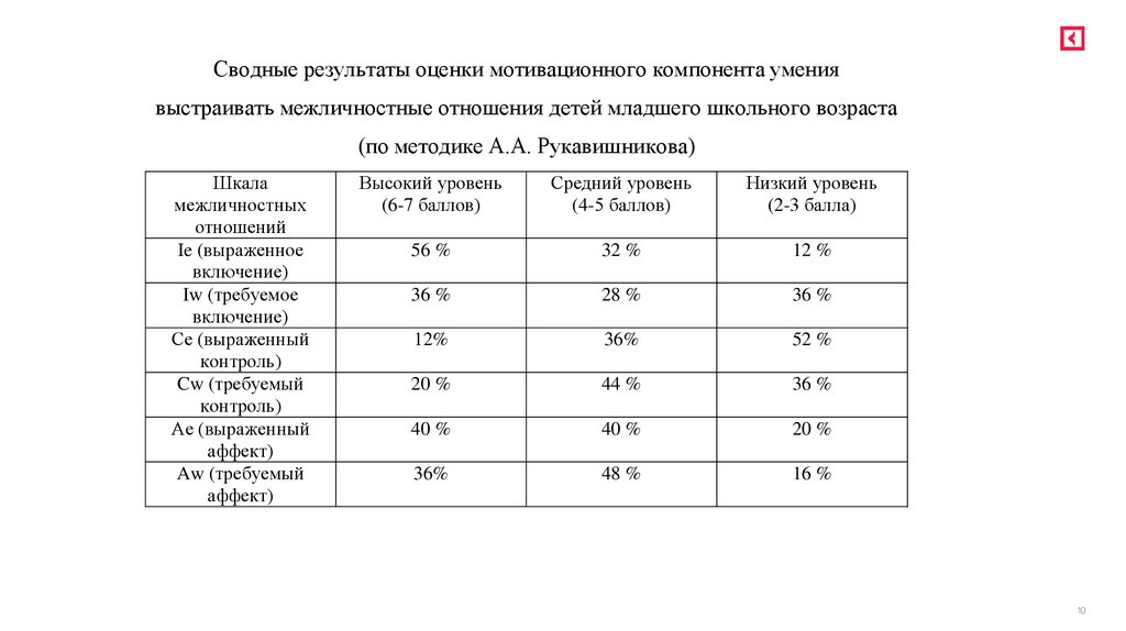 Сводные результаты оценки мотивационного компонента умениявыстраивать межличностные отношения детей младшего школьного возраста