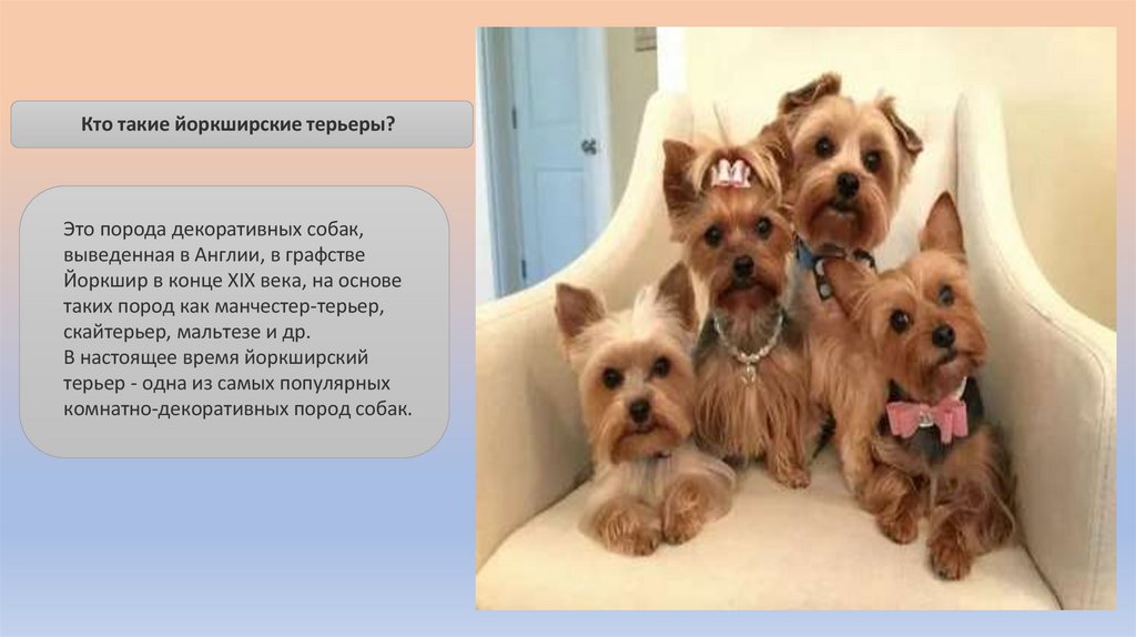 Кто такие йоркширские терьеры?Это порода декоративных собак,