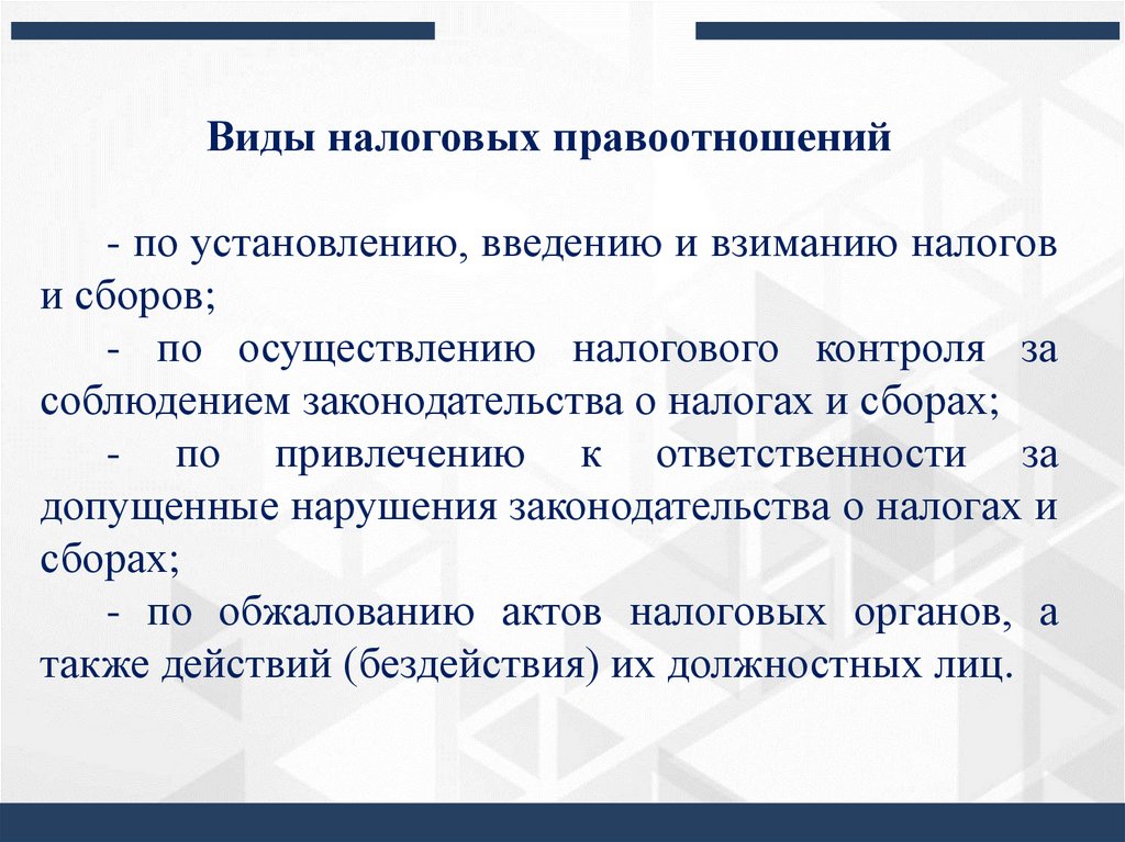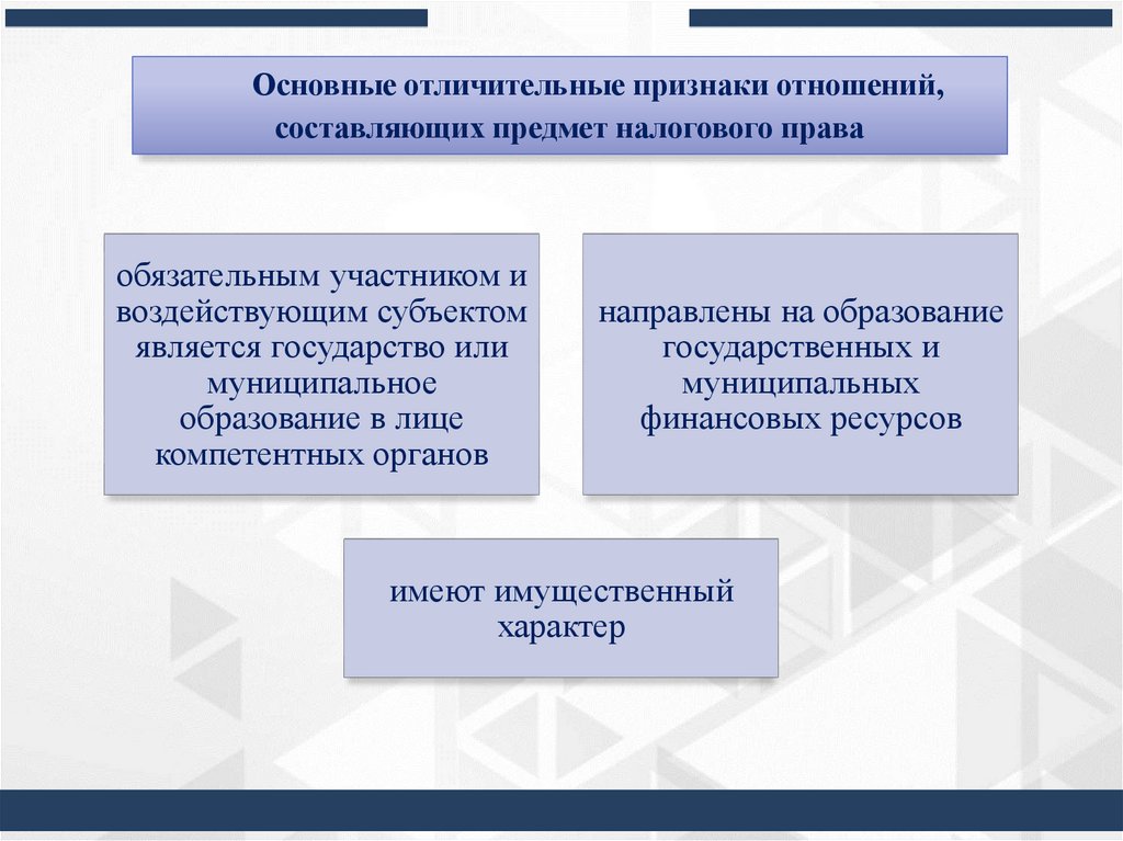 Основные отличительные признаки отношений,составляющих предмет налогового права