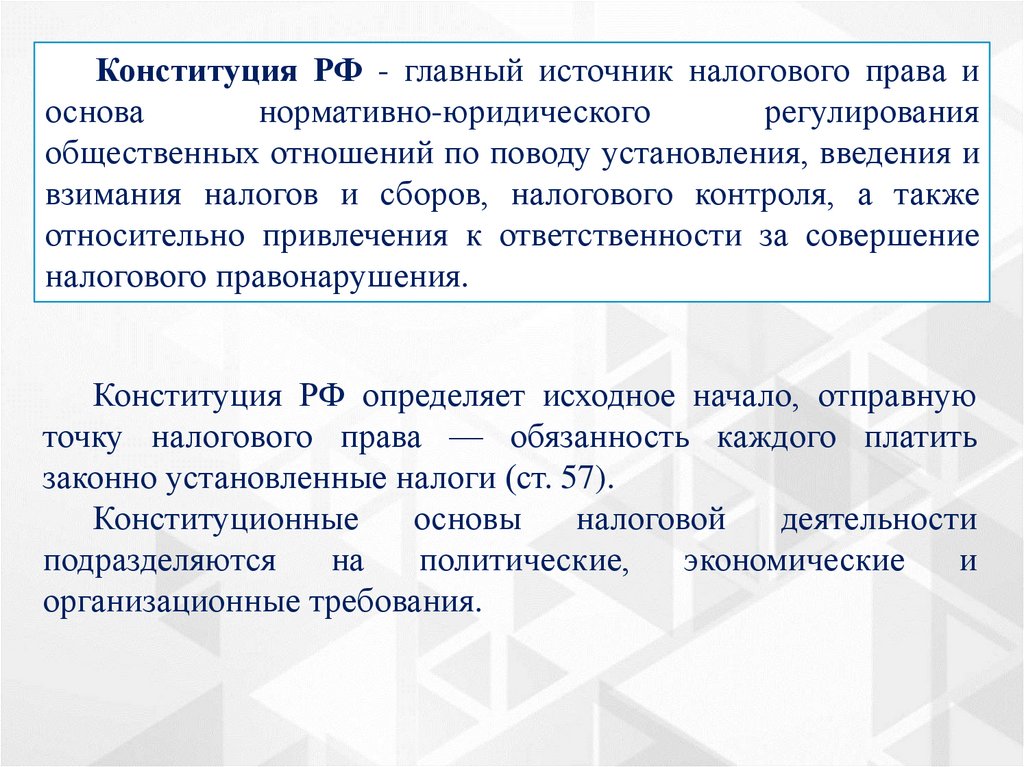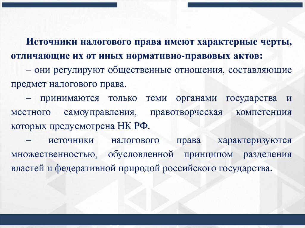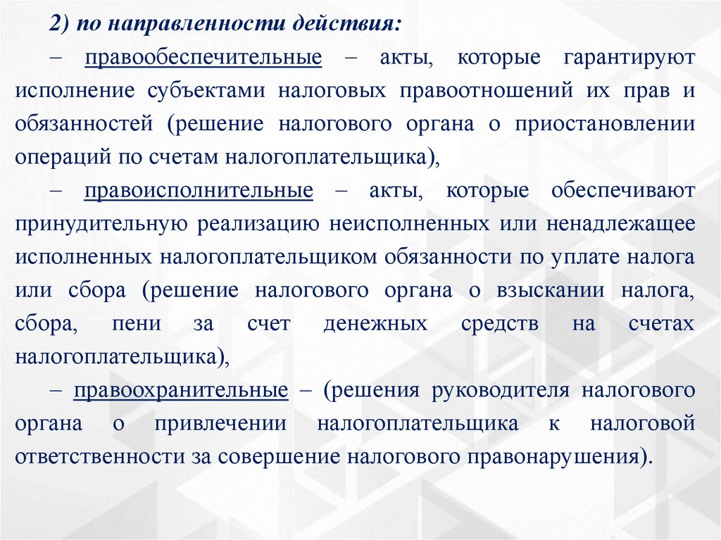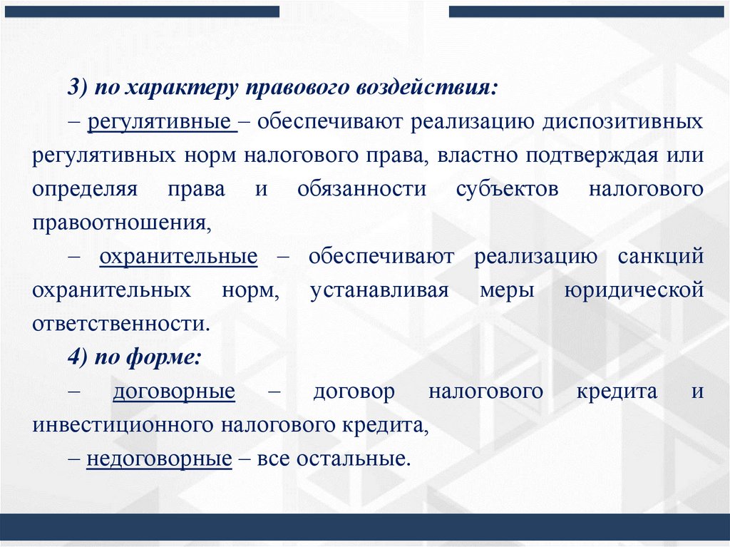 создаваемых и охраняемых государством норм. Все налоговоправовые нормы согласованы между собой, в результате чего