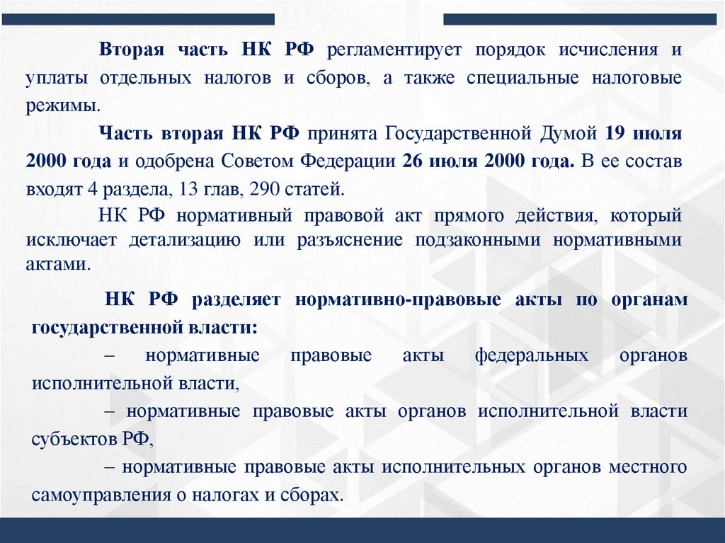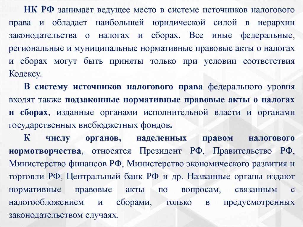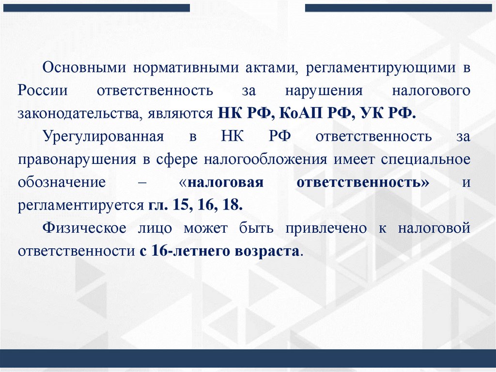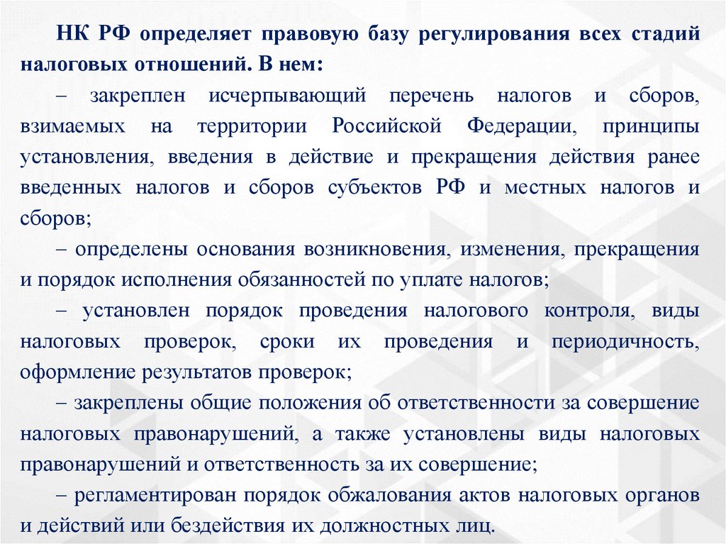 законодательства, являются НК РФ, КоАП РФ, УК РФ.