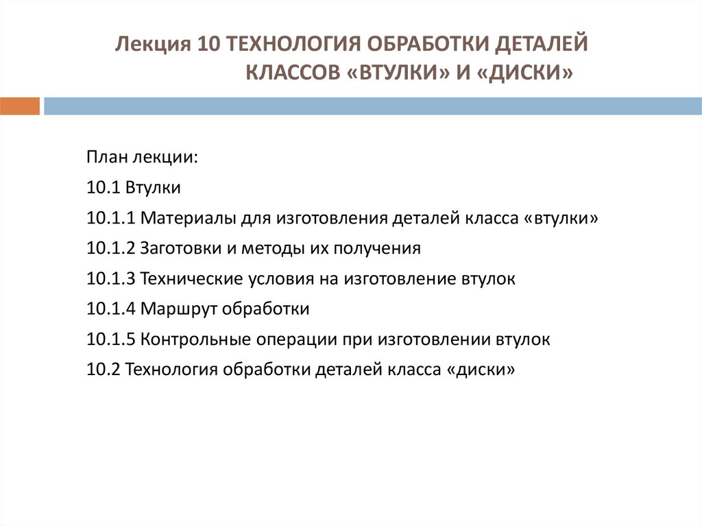 Лекция 10 ТЕХНОЛОГИЯ ОБРАБОТКИ ДЕТАЛЕЙКЛАССОВ «ВТУЛКИ» И «ДИСКИ»