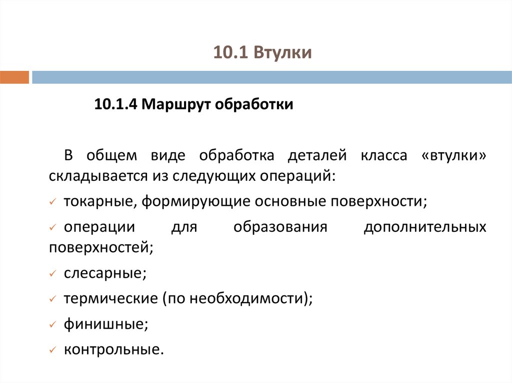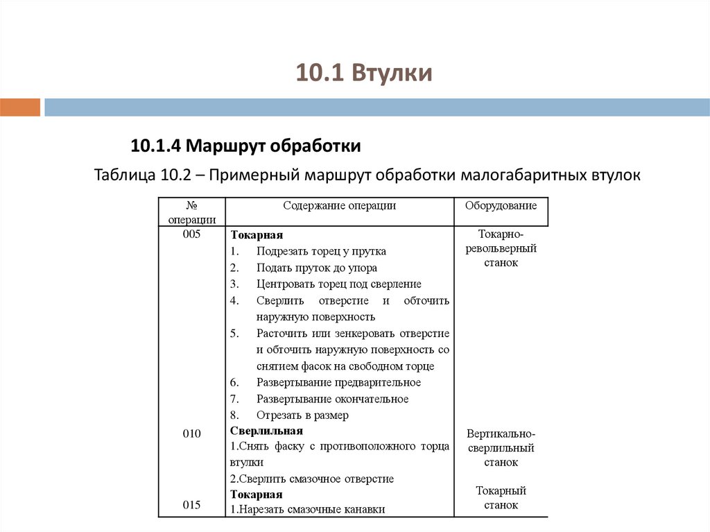 10.1.4 Маршрут обработкиВ общем виде обработка деталей класса «втулки»