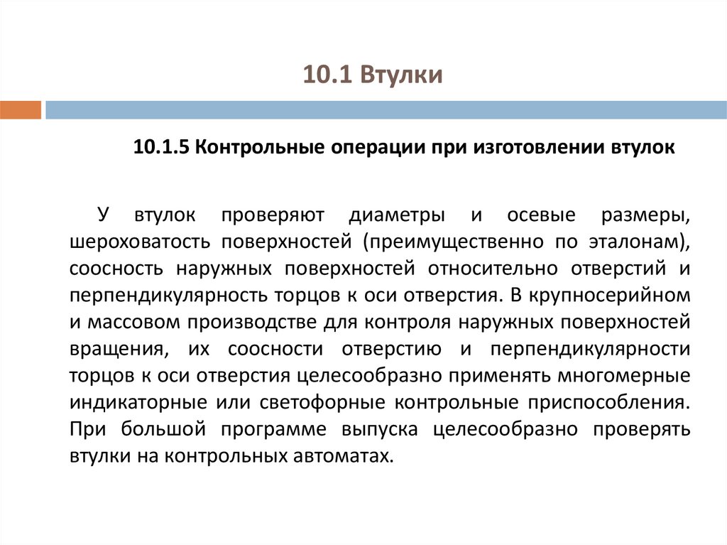10.1.5 Контрольные операции при изготовлении втулокУ втулок проверяют диаметры и осевые размеры,