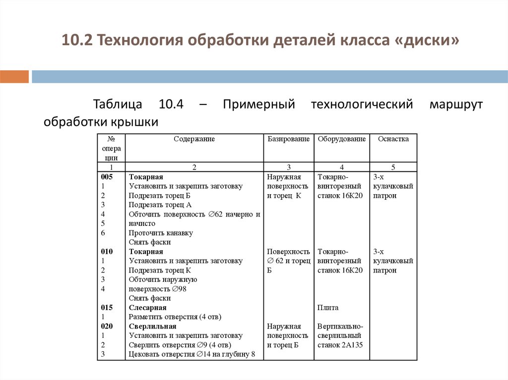 20. 10.2 Технология обработки деталей класса «диски»
