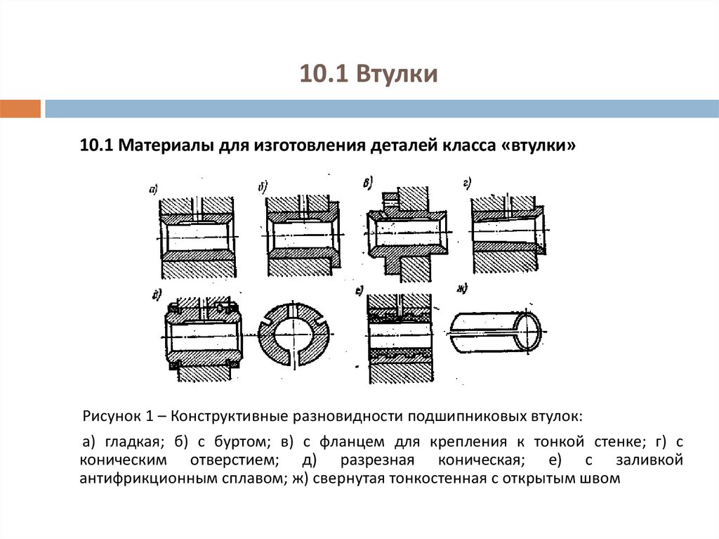 10.1 Материалы для изготовления деталей класса «втулки»Рисунок 1 – Конструктивные разновидности подшипниковых втулок: