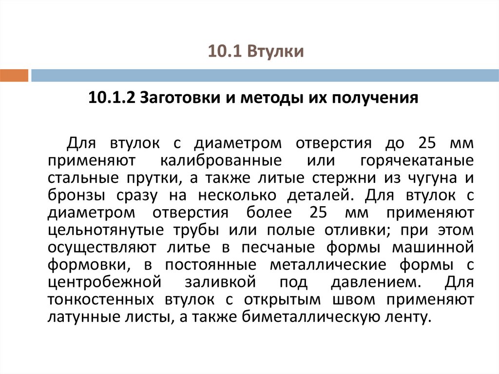 10.1.2 Заготовки и методы их полученияДля втулок с диаметром отверстия до 25 мм