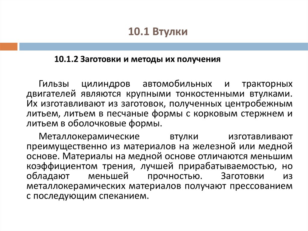 10.1.2 Заготовки и методы их полученияДля улучшения антифрикционных свойств втулки