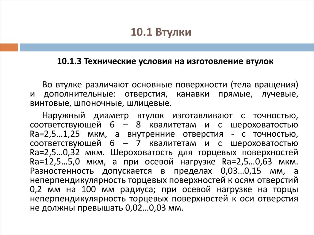 10.1.3 Технические условия на изготовление втулок