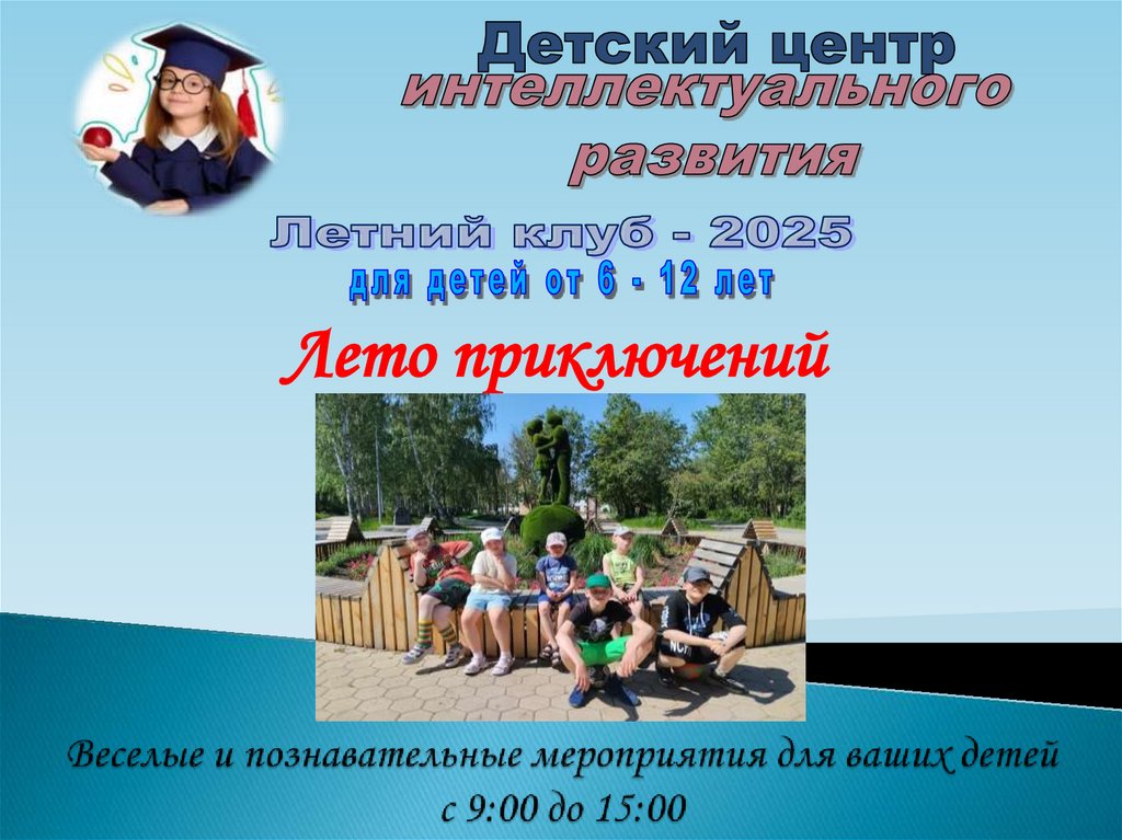 Детский центр интеллектуального развития. Летний клуб-2025 для детей 6–12 лет «Лето приключений»