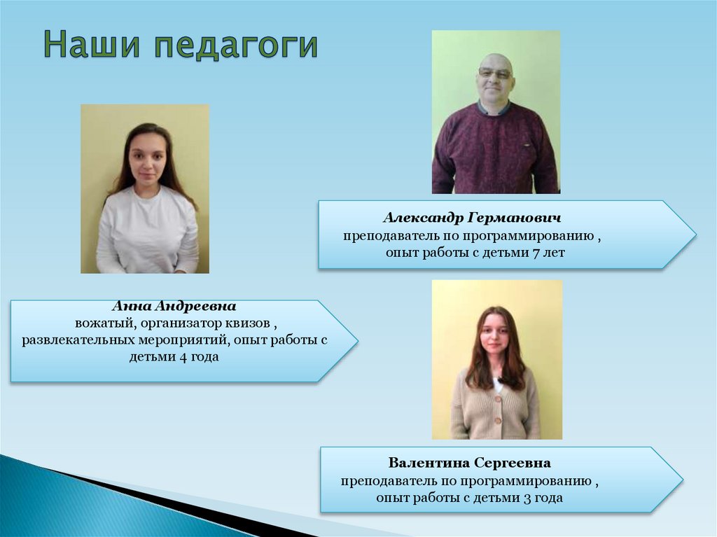 3) Здесь трудится команда высококвалифицированных педагогов.