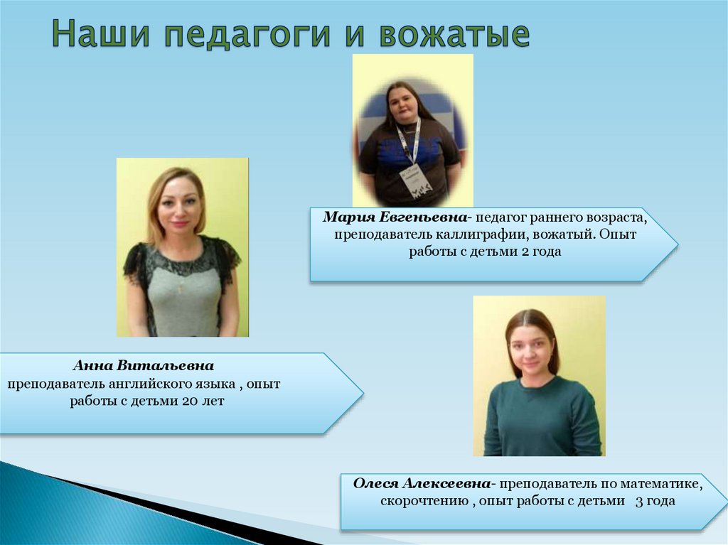 Мария Евгеньевна- педагог раннего возраста,преподаватель каллиграфии, вожатый. Опыт