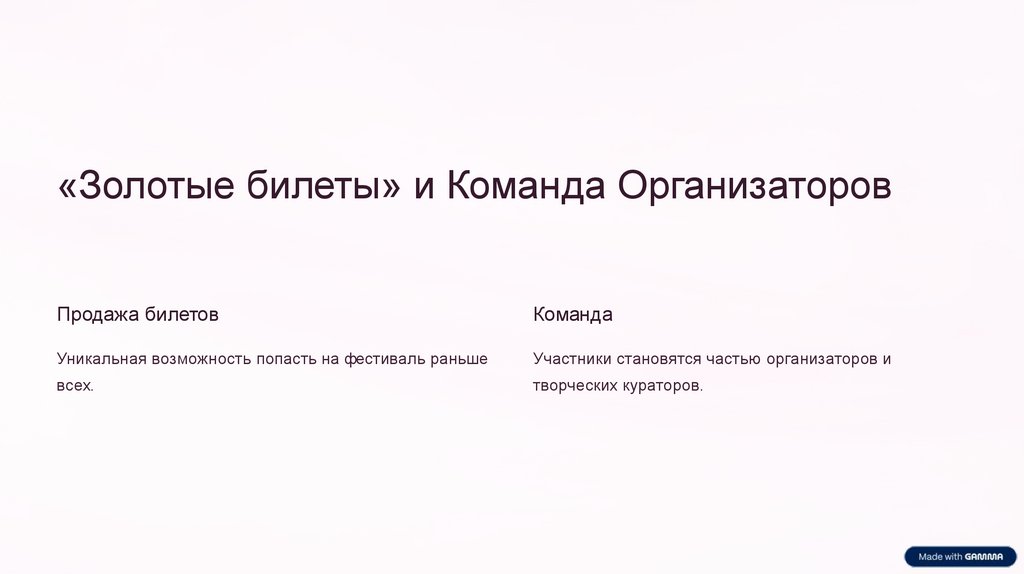 «Золотые билеты» и Команда ОрганизаторовПродажа билетов