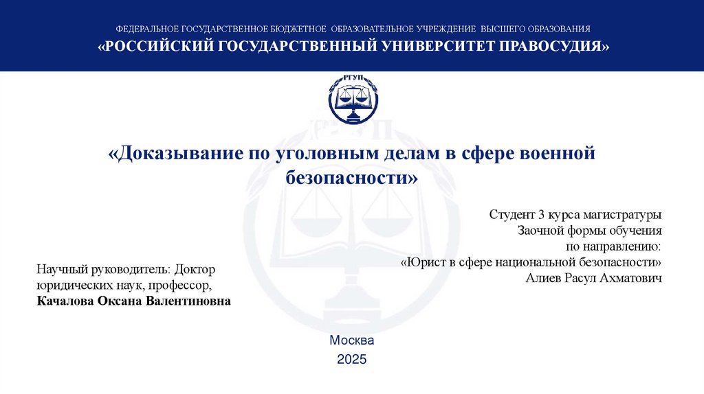 ФЕДЕРАЛЬНОЕ ГОСУДАРСТВЕННОЕ БЮДЖЕТНОЕ ОБРАЗОВАТЕЛЬНОЕ УЧРЕЖДЕНИЕ ВЫСШЕГО ОБРАЗОВАНИЯ«РОССИЙСКИЙ ГОСУДАРСТВЕННЫЙ УНИВЕРСИТЕТ ПРАВОСУДИЯ»