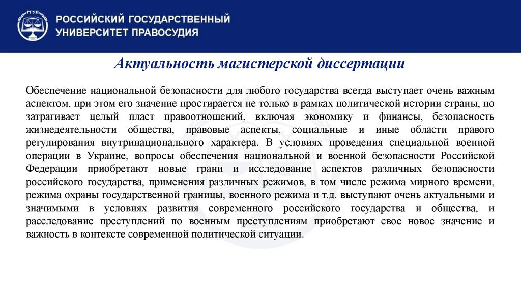 Актуальность магистерской диссертацииОбеспечение национальной безопасности для любого государства всегда выступает очень важным