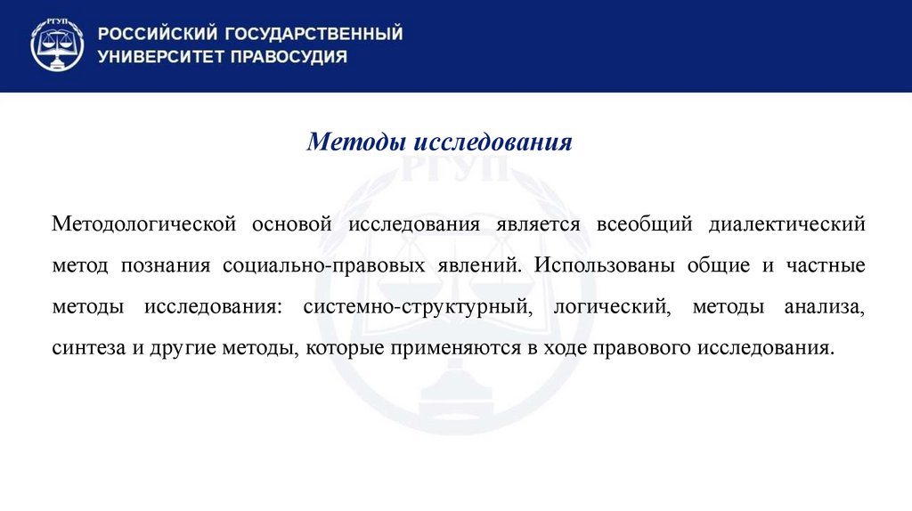 синтеза и другие методы, которые применяются в ходе правового исследования.
