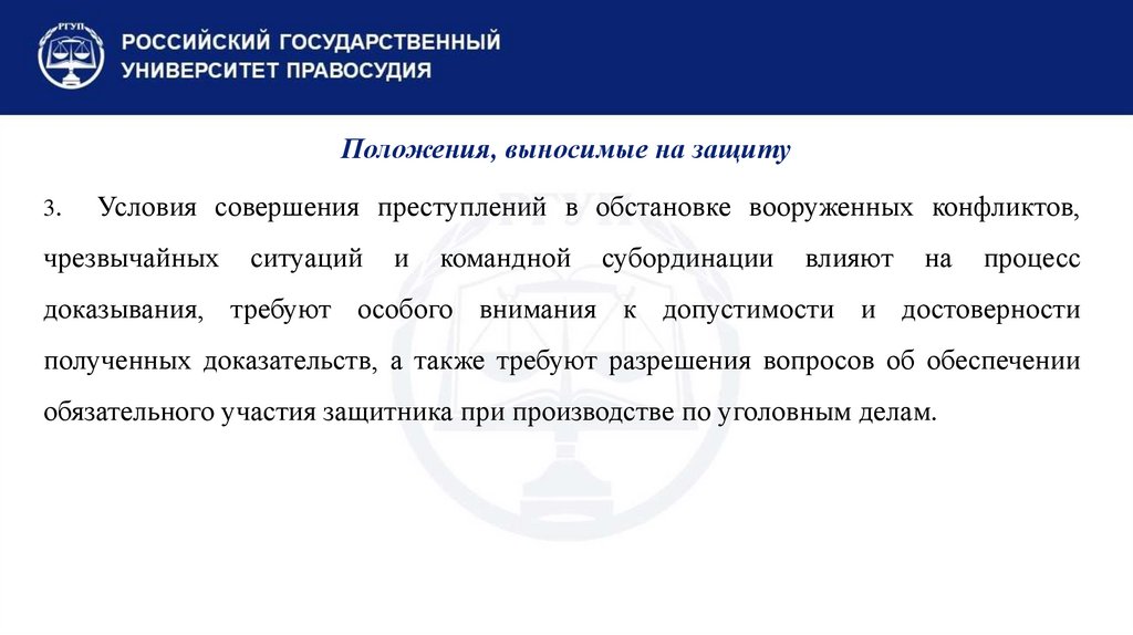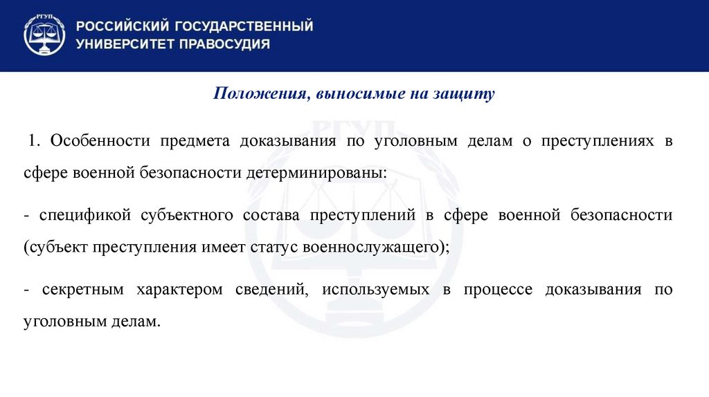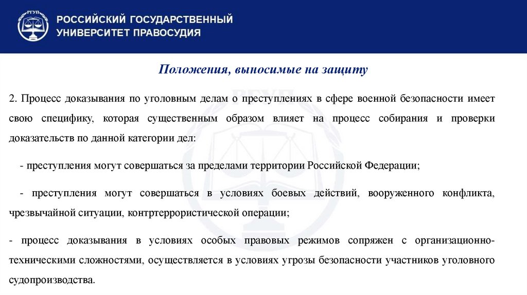 Положения, выносимые на защиту2. Процесс доказывания по уголовным делам о преступлениях в сфере военной безопасности имеет