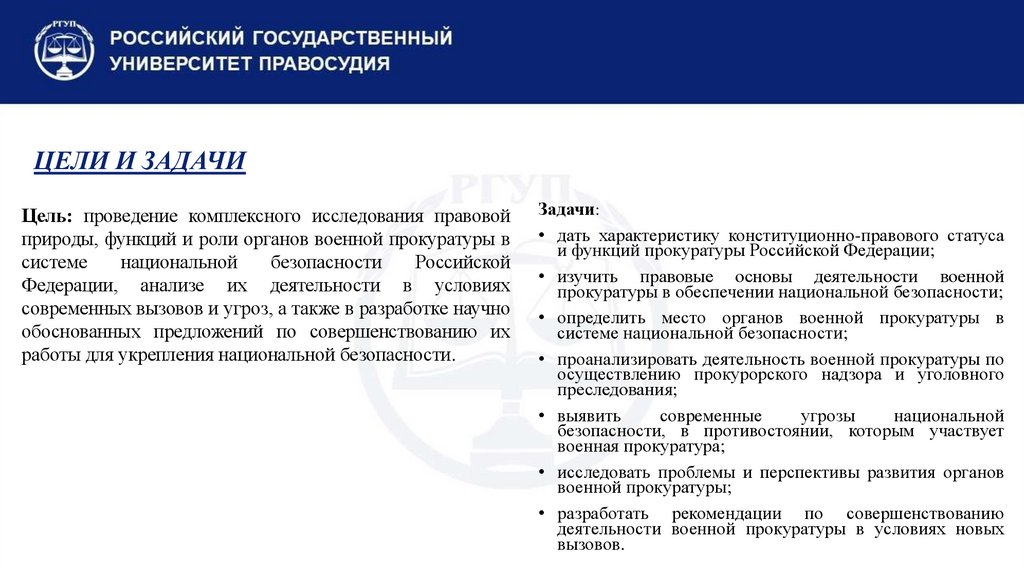 Цель: проведение комплексного исследования правовойприроды, функций и роли органов военной прокуратуры в
