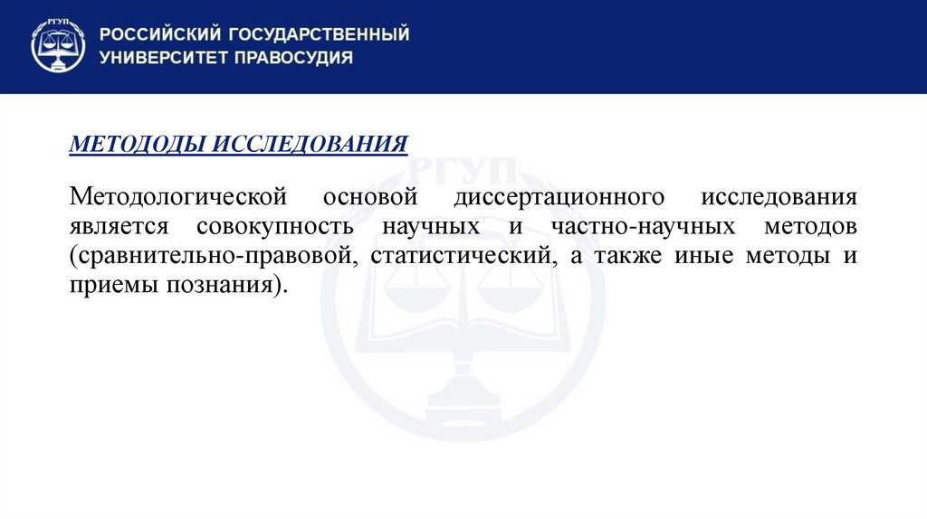 (сравнительно-правовой, статистический, а также иные методы и