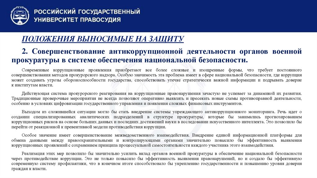 2. Совершенствование антикоррупционной деятельности органов военнойпрокуратуры в системе обеспечения национальной безопасности.
