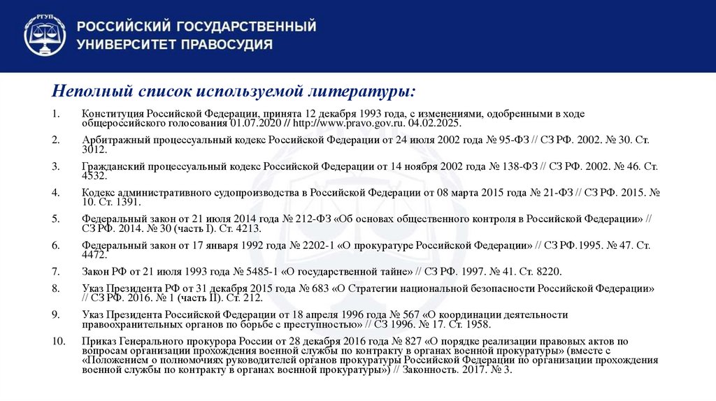 10. Неполный список используемой литературы: