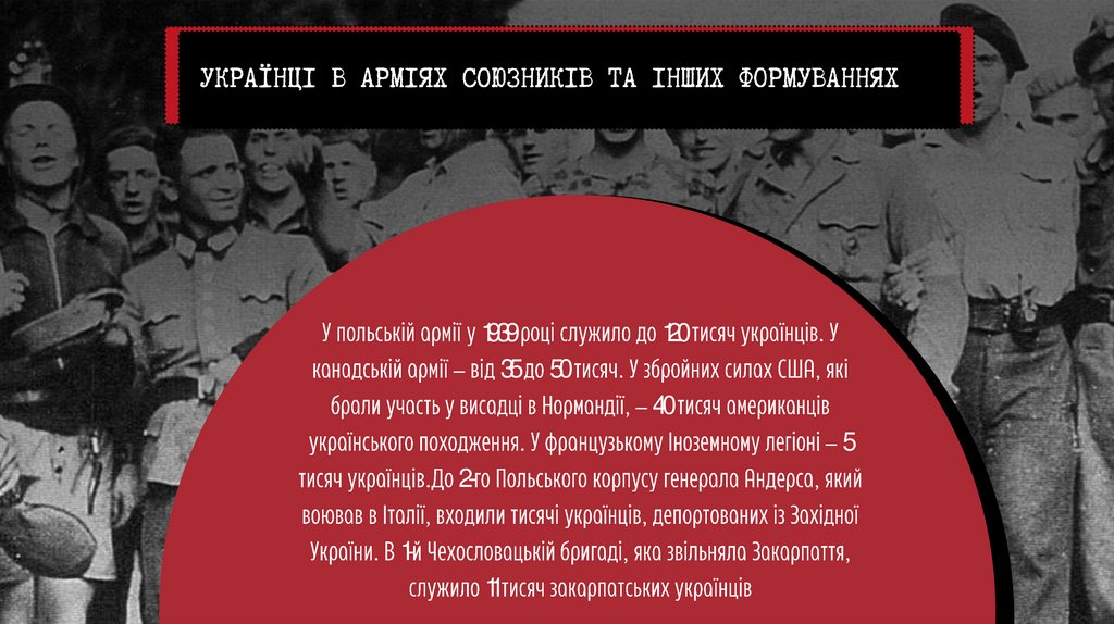 УКРАЇНЦІ В АРМІЯХ СОЮЗНИКІВ ТА ІНШИХ ФОРМУВАННЯХ1939