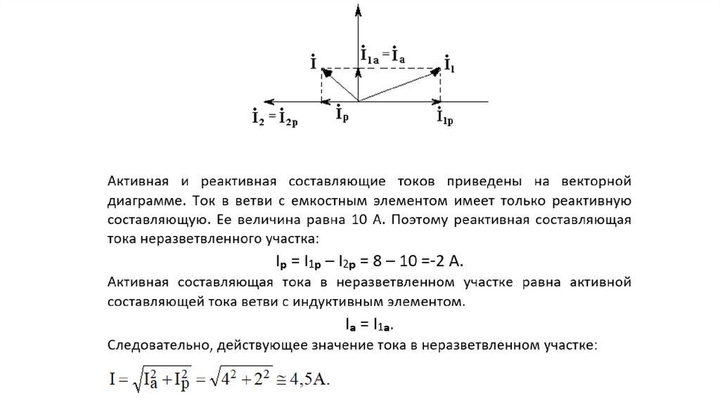 • Вектор тока можно представить как сумму активной и реактивной егосоставляющих: