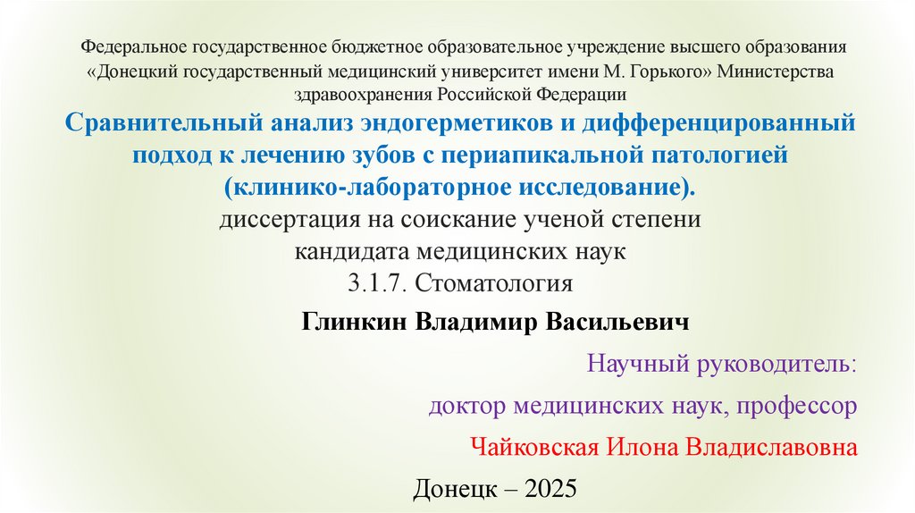 Федеральное государственное бюджетное образовательное учреждение высшего образования«Донецкий государственный медицинский университет имени М. Горького» Министерства