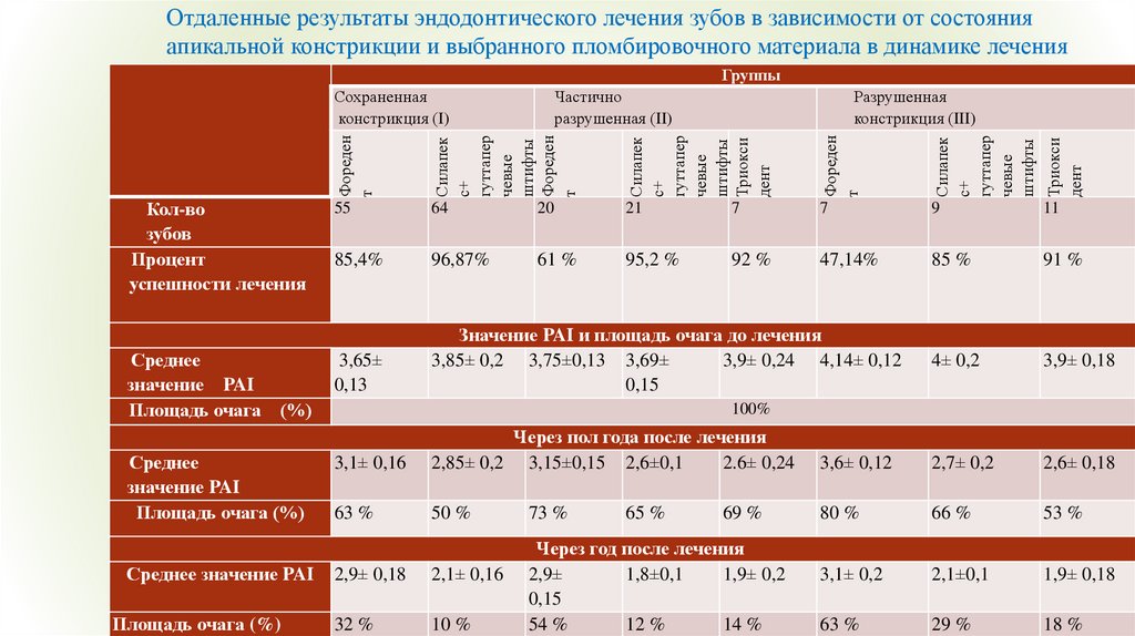 этой группе зубов был достигнут при использовании Силапекса - с 88 % до 80 %,
